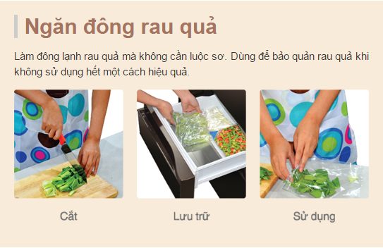 - Ngăn đông rau quả: Với ngăn đông rau quả này, vitamin và dưỡng chất trong rau quả không bị thất thoát nhờ được làm đông đặc biệt.
