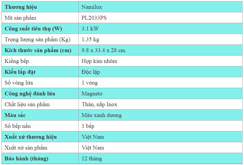 GIỚI THIỆU BẾP GAS DU LỊCH NAMILUX PM1811AS