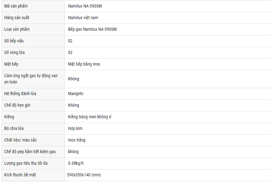 GIỚI THIỆU BẾP GAS NAMILUX NA-590SM