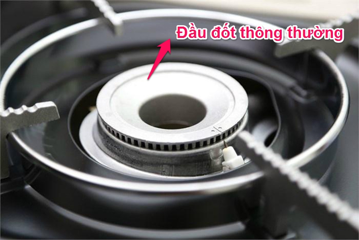 Đầu đốt thông thường có nhiều khe nhỏ xung quanh để lửa để lửa phân bố theo hình tròn, cháy đều, tiết kiệm thời gian nấu. Điểm mạnh của loại đầu đốt này là có thể cho ngọn lửa mạnh, ổn định nhưng ngọn lửa chỉ tỏa ra xung quanh chứ không tập trung một chỗ được.